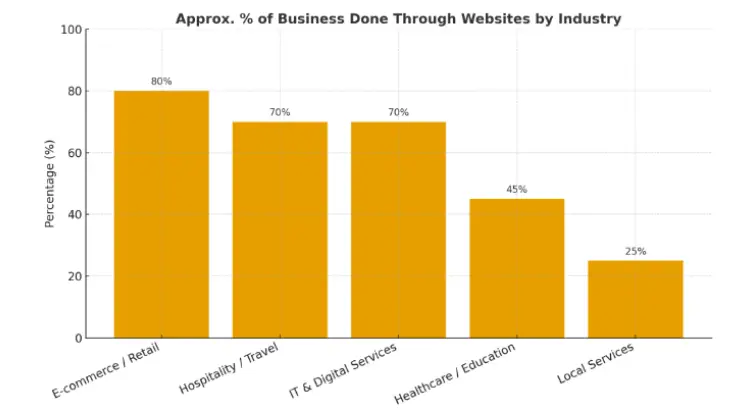 For services (IT, hospitality, travel, education, healthcare) and micro/small businesses, a professional website is now a core business asset responsible for a majority of leads in many B2B sectors and for a large share of booking/sales in B2C sectors.